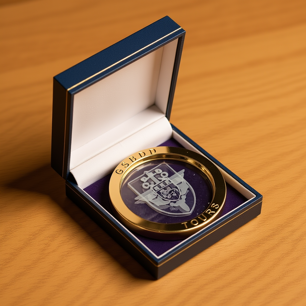 > Cadeaux protocolaires pour les déplacements ou les rencontres officielles : plateaux en métal argenté, médailles, coupelles, ‘coins’, boutons de manchette, blocs en cristal optique avec gravure 3D.