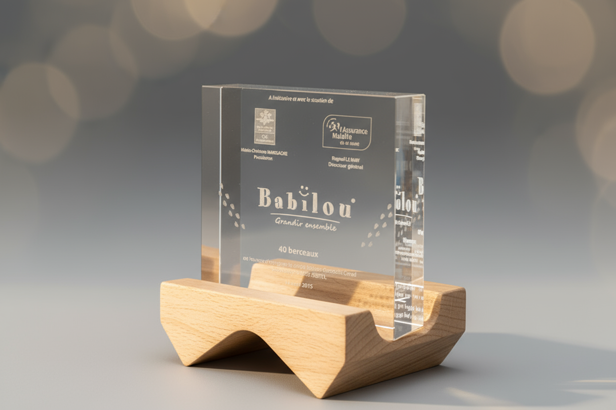 > Cadeaux protocolaires pour les déplacements ou les rencontres officielles : plateaux en métal argenté, médailles, coupelles, ‘coins’, boutons de manchette, blocs en cristal optique avec gravure 3D.